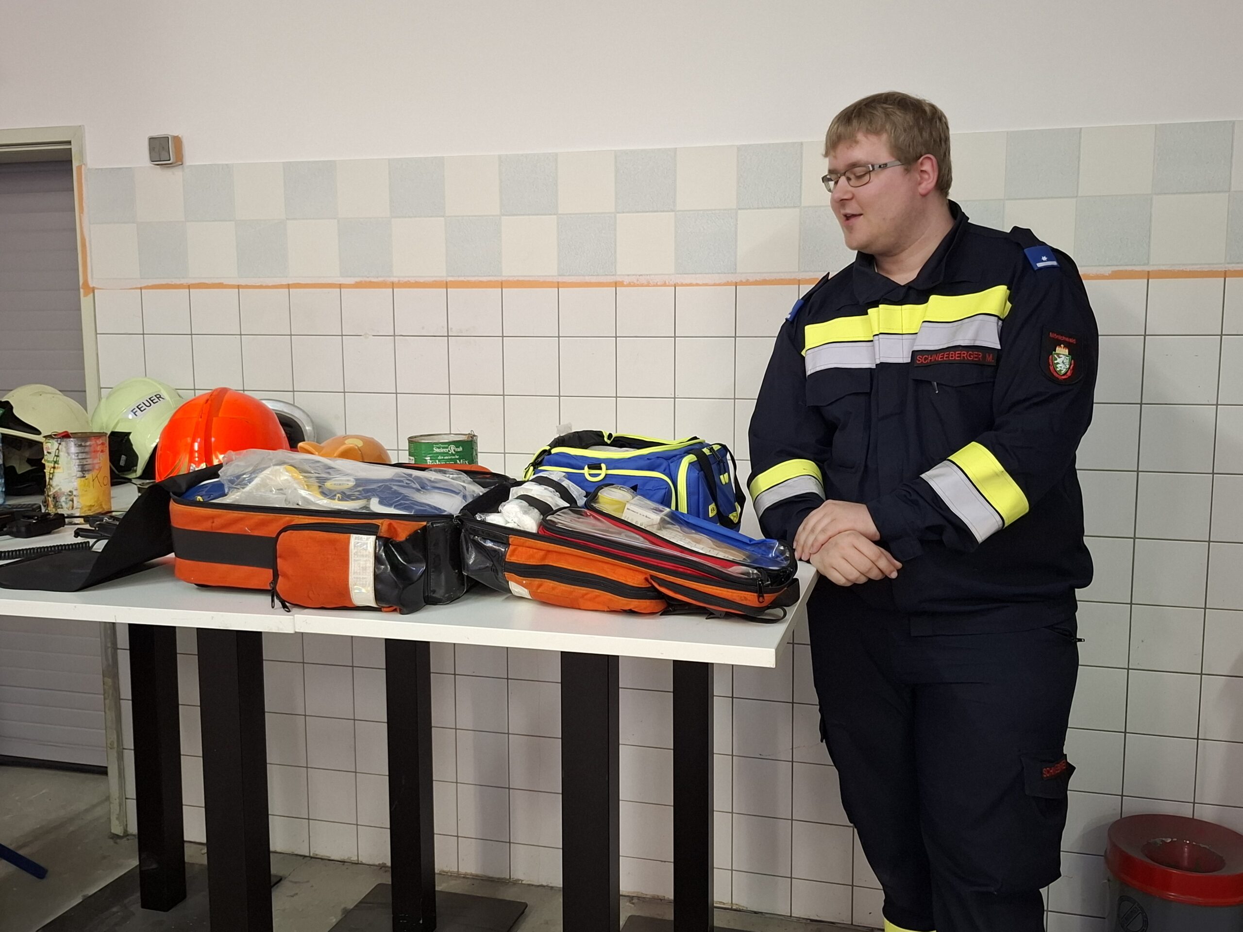 Einmal stand das Thema “Absichern einer Unfallstelle” am Plan, dann “Funkgerätekunde” und zuletzt noch “Sanität und Wundversorgung”.